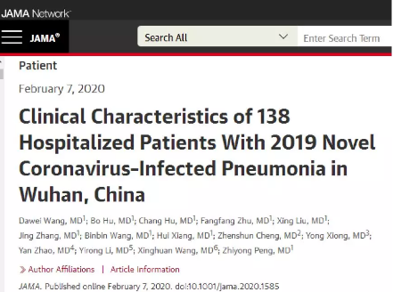 2020年2月7日,武汉大学中南医院彭志勇课题组在国际顶级学术期刊《美国医学会杂志》上发表一篇研究型论文,题为“Clinical Characteristics of 138 Hospitalized Patients With 2019Novel Coronavirus–Infected Pneumonia in Wuhan, China”,对新冠肺炎住院患者的临床特点,尤其是重症患者与非重症患者的临床差异进行了详尽的分析研究。