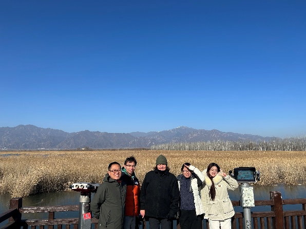 11月25日,刘雷震副教授与刘沙沙副教授带领Irena教授前往河北怀来县官厅水库进行野外考察。考察活动设置了妫水河、野鸭湖湿地、京西草原和卧牛山四个考察点位,双方交流了入库水系分布、湖库水源水质保护生态工程,以及周边自然植被与人类活动对湖库可能带来的影响。Irena教授对野鸭湖湿地丰富的鸟类资源表现出浓厚兴趣,并对北京作为超大城市在环境保护与质量提升方面所取得的成就表示赞赏。双方一致认为,官厅水库是一个理想的湖泊-植被-人类活动互作的遥感监测与教学实验场地,期待未来能够在此开展联合试验。