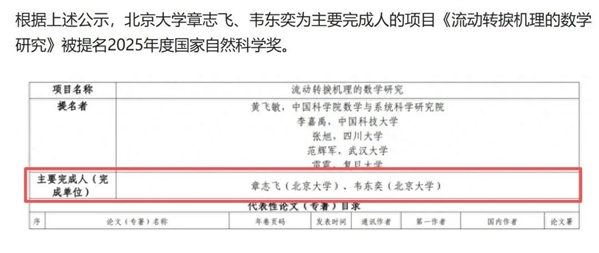 今年9月22日,科技部官网公示2025年度国家自然科学奖初评结果,北京大学章志飞、韦东奕作为主要完成人的项目《流动转捩机理的数学研究》通过2025年度国家自然科学奖初评,初评建议等级为二等奖。