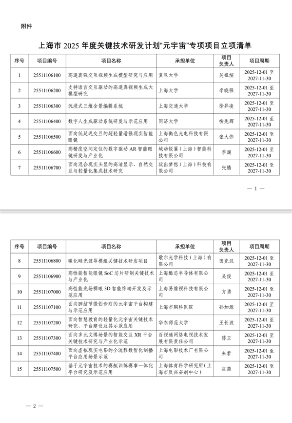 上海市2025年度关键技术研发计划“元宇宙”专项项目立项清单.pdf(点击下载)