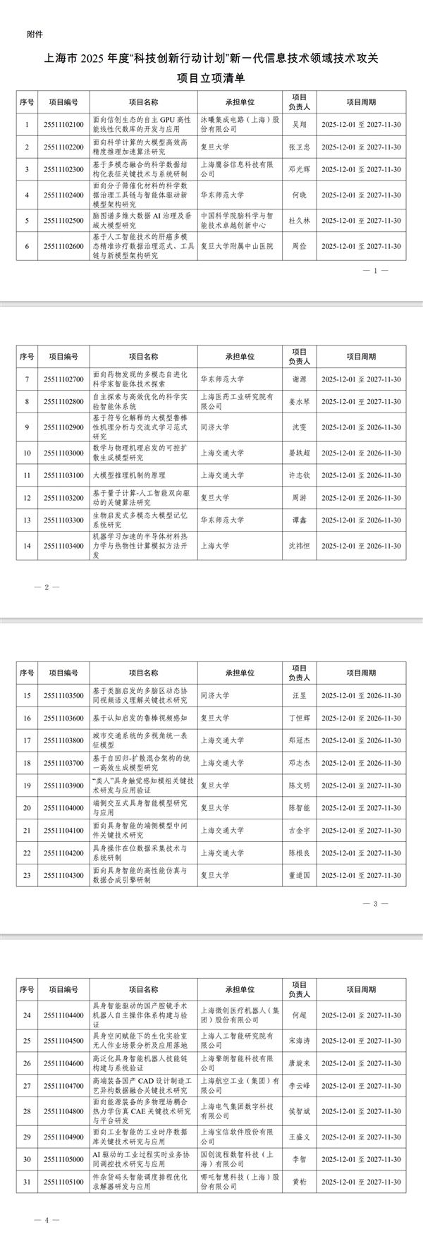 上海市2025年度“科技创新行动计划”新一代信息技术领域技术攻关项目立项清单.pdf(点击下载)