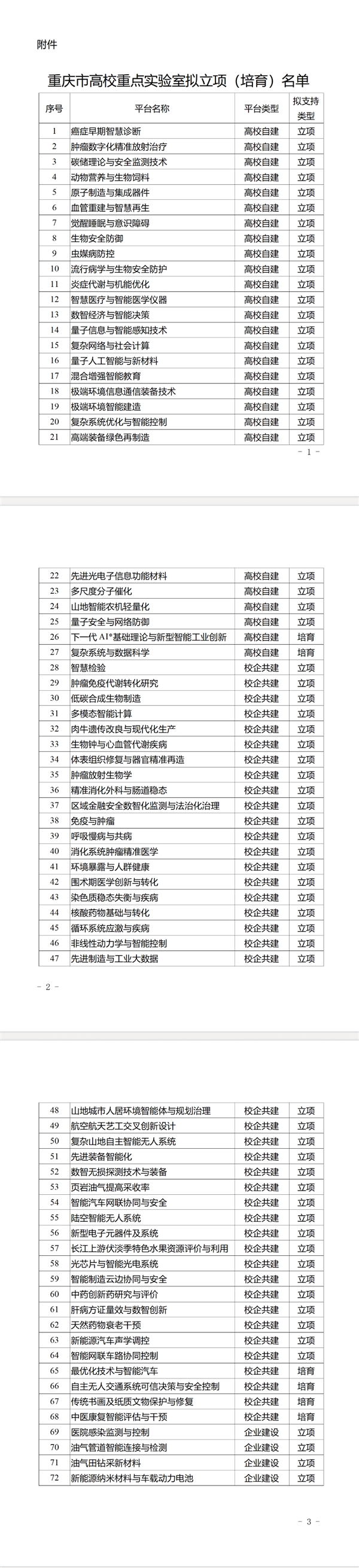 附件:重庆市高校重点实验室拟立项(培育)名单