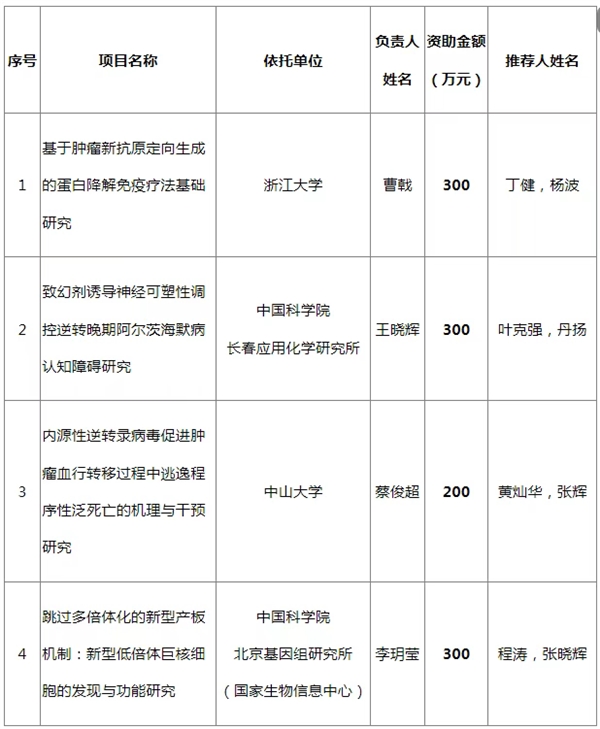 2025年医学科学部第二批专家推荐类原创探索计划项目资助结果公示