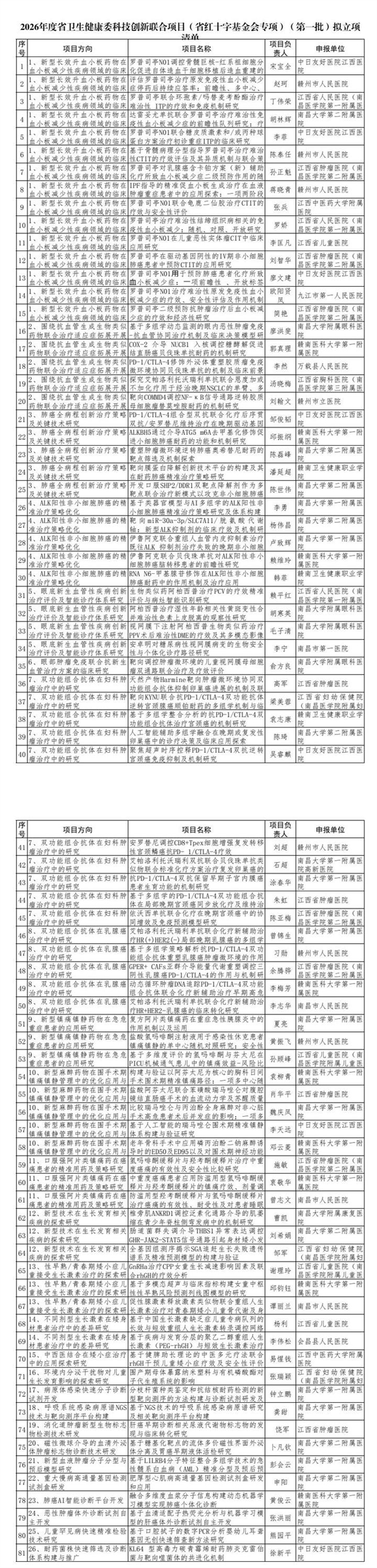 附件:2026年度省卫生健康委科技创新联合项目(省红十字基金会专项)(第一批)拟立项清单