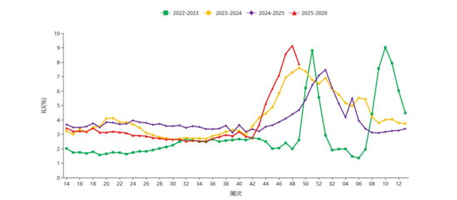 “从往年来看,流感季会持续至次年春季3月份左右。但按今年情况分析,流感季可能会提前结束,预计持续到2026年1月底,春节前后即可趋于平缓。”李侗曾强调,“即使流行趋势趋于平缓,仍应警惕散发病例,以及其他低流行趋势的病原体感染。”