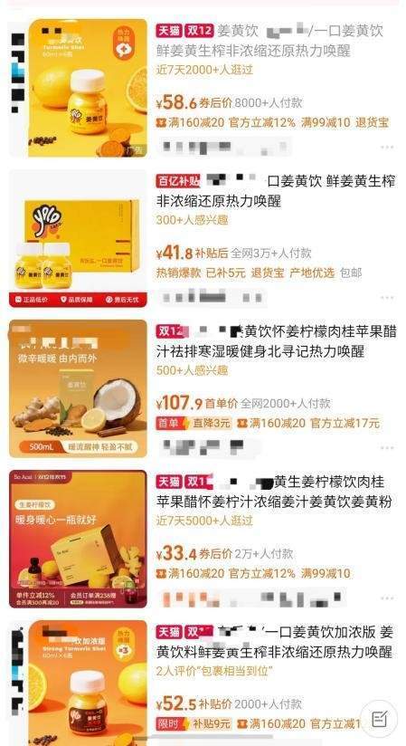 12月12日,某电商平台“姜黄饮”相关产品销售情况。