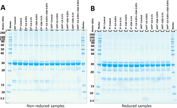牛奶中加入咖啡酸/绿原酸后,蛋白质谱代表性凝胶结果