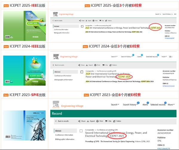 连续多届IEEE,ICEPET连续2届会后3个月EI检索,会议历史好【查看详情】