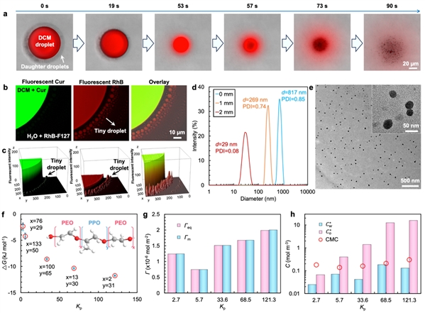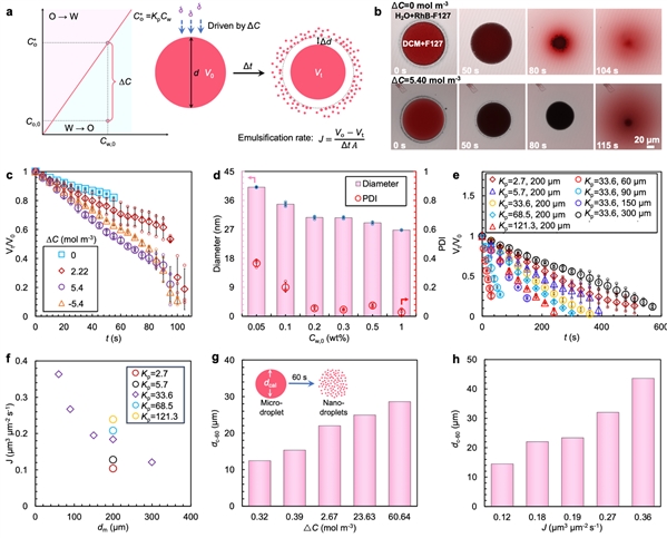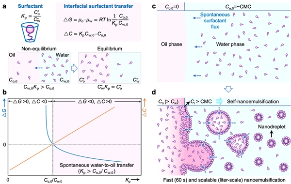 图2:表面活性剂自发转移诱导的纳米自乳化与参数表征。