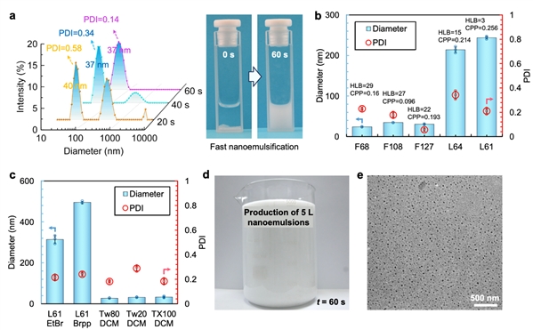 图4:纳米自乳化技术的可扩展性与纳米乳液的快速制备。