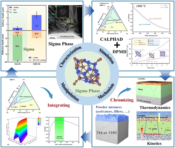 基于“实验-模拟-机理-调控”思路揭示Sigma相形成热动力学机理指导通用渗层结构精细调控的全链条研究策略