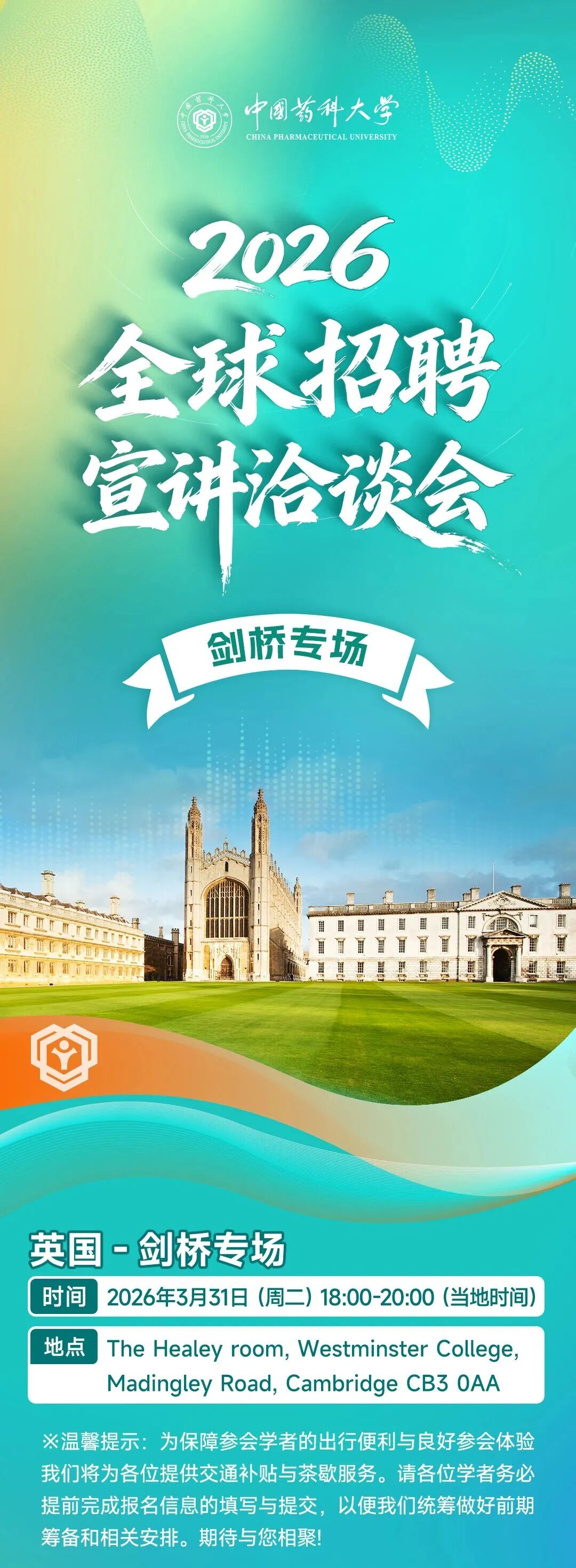 剑桥专场 | 中国药科大学2026全球招聘宣讲洽谈会诚邀参加