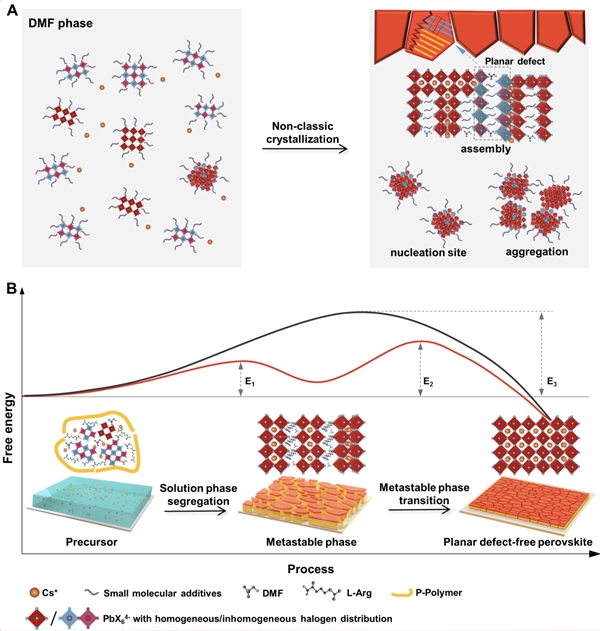 图1.混合卤素钙钛矿小分子调控的非经典结晶过程以及亚稳相结晶策略