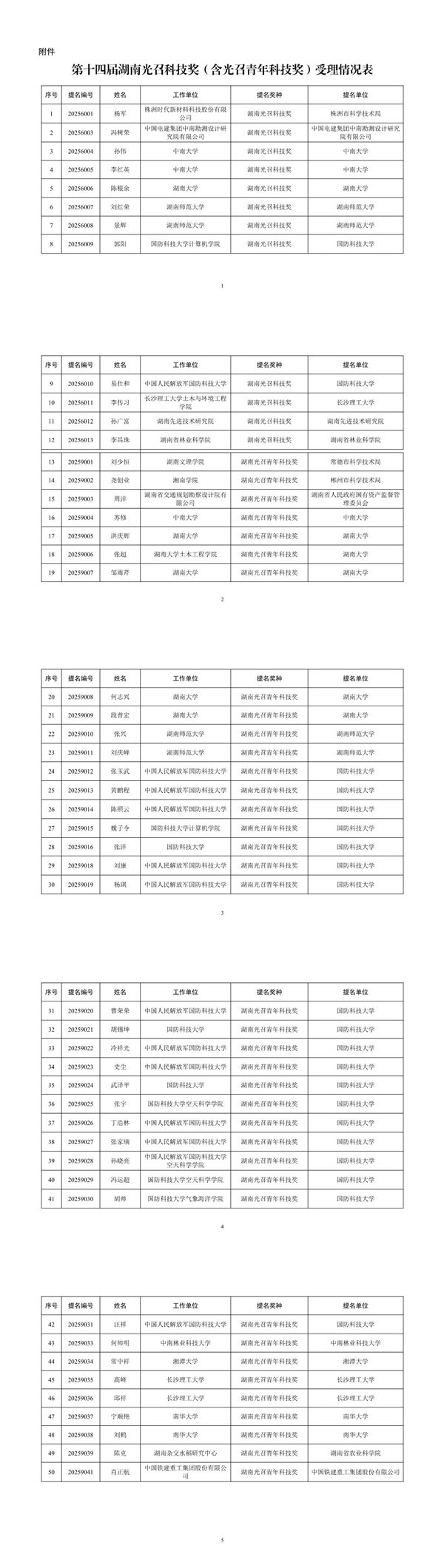 50人,湖南光召科技奖(含光召青年科技奖)公示