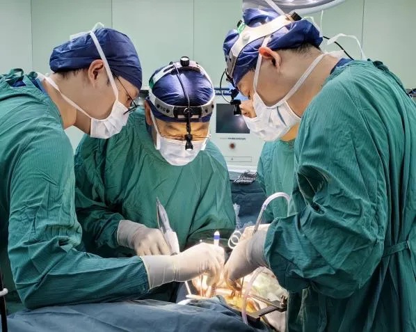 10月2日,匹配的爱心供肺顺利到位,手术按既定方案精准推进:患者全麻后,心外科李勇新、郭锋伟教授团队在体外循环支持下,通过胸腔镜辅助肋间小切口完成微创主动脉瓣置换,完整保护了胸廓的稳定性,术中出血量控制在50毫升以内,为后续肺移植保留了良好的手术条件。