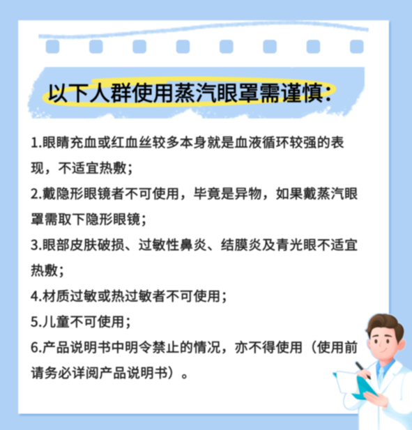 2.带妆或眼部有感染时使用蒸汽眼罩,风险加倍。