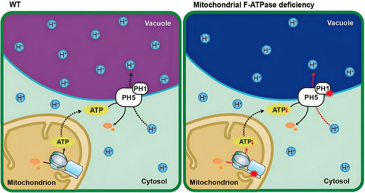 矮牵牛线粒体F-ATP酶复合体失活会降低P-ATP酶转运H+到液泡的能力。研究团队供图,下同