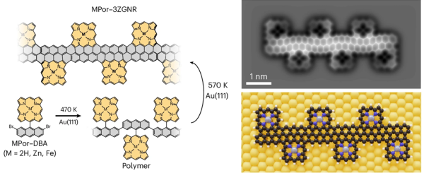 近期,中国科学院宁波材料技术与工程研究所联合瑞士联邦材料科学与技术研究所、德国马克斯-普朗克高分子研究所,合成了关键前驱体分子MPor–DBA,并通过热诱导逐步反应,在Au(111)表面上实现了自下而上的精准合成,制备出一系列具有周期性卟啉边缘拓展的锯齿形石墨烯纳米带材料。
