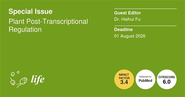 Life 邀请了江西农业大学农学院的付海辉博士,创建特刊 Plant Post-Transcriptional Regulation(植物转录后调控)。本期特刊聚焦于植物生长发育和环境适应性背景下转录后调控的最新研究成果。这些发现将为理解植物生长发育和环境适应等关键生物学问题奠定分子基础,并有助于通过植物的利用应对人类面临的重大可持续发展挑战。