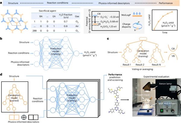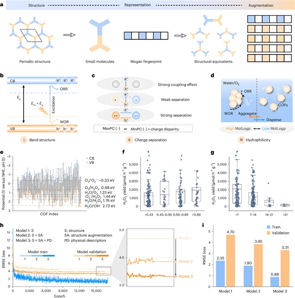 图2:COF光催化H2O2产率预测模型与从头设计流程。