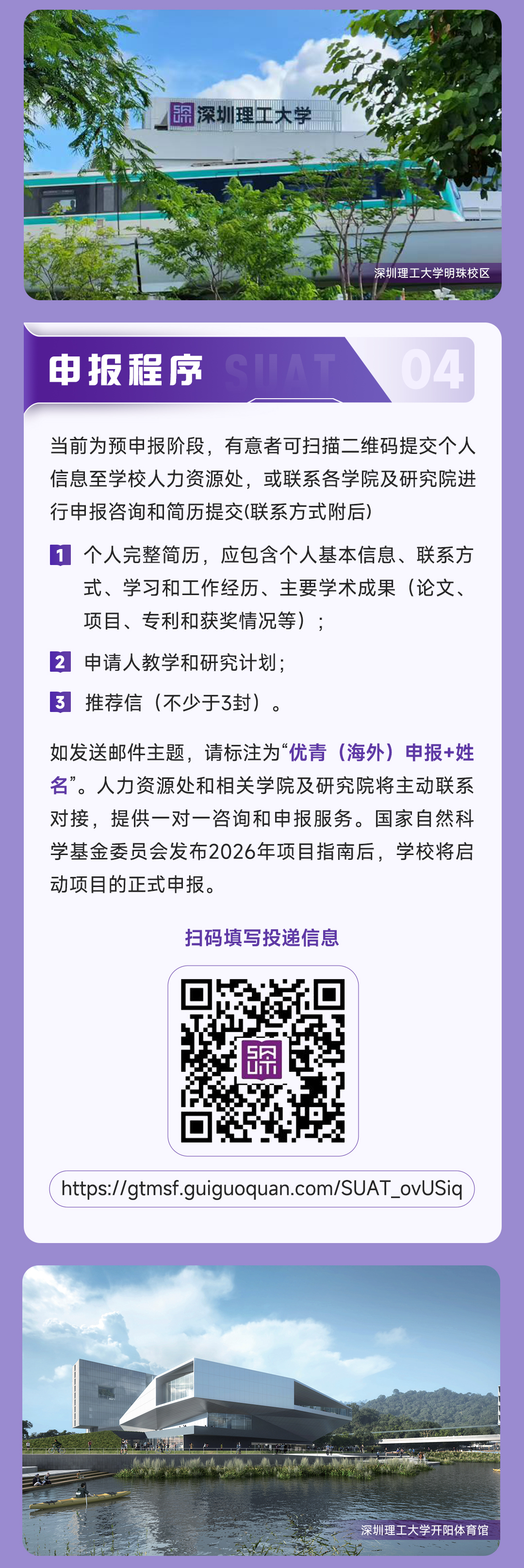 深圳理工大学诚邀全球英才依托申报2026年海外优青