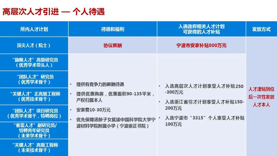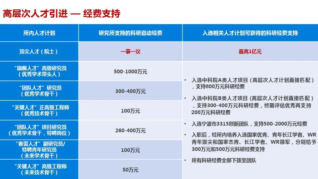 宁波材料所致力于创造公平公正、开放共享的良性政策生态。宁波材料所坚持“不与团队争利益,不与专家争权利”,通过灵活的体制机制、敢于破陈出新的管理制度,为人才松绑,让人才有成就感、获得感。修订的《科技成果转移转化管理办法》,将成果转化收益的80%用于奖励科研团队,为科研人员在宁波创业专设“在职创业”绿色通道;设置成果育成基金,分类支持成果从小试、中试到示范应用各阶段;设置科研探索基金,以同体量国家项目标准,支持鼓励新思想、新技术和新工艺探索。
