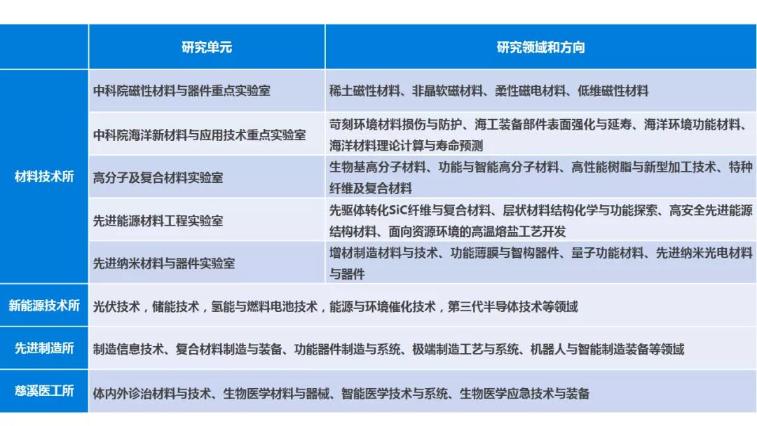 中国科学院宁波材料技术与工程研究所(以下简称宁波材料所)成立于2004年4月20日,是中科院在浙江省成立的第一个直属研究所。内设新材料、新能源、先进制造及医学工程四大研究领域。经过16年的努力形成了“以人为本”、“五位一体”基础上科研技术链、材料应用链、人才培养引进链三链融通的创新生态。