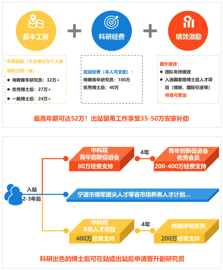 在站期间,鼓励博士后申请国家自然科学基金、中国博士后科学基金、浙江省/宁波市自然科学基金等;宁波市对于获得的中国或浙江省博士后科学基金提供1:1的经费配套;鼓励申请国家、中科院、浙江省、宁波市的各类人才计划。