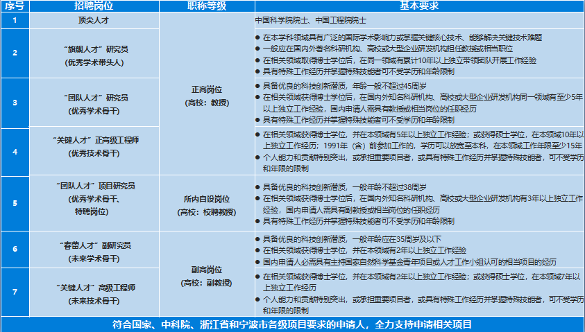 附表1:中科院宁波材料所副高以上人才计划及基本要求